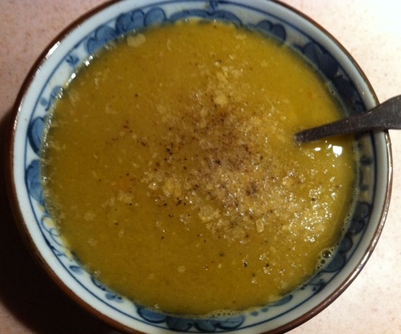 As soon as the weather changes, this is my go to, must have in the fridge at all times soup…this morning I made this using coconut oil instead of olive, and added about 1T of raw, fresh turmeric. Since starting CrossFit, I try to use turmeric in as many meals as possible due to it’s anti-inflammatory properties. It lends a beautiful color and a deep spicy, earthy flavor. I haven’t decided if I am going to add potatoes…I do have amazing, tiny, creamy, buttery, yellow potatoes that I picked up at the Greenfield Farmer’s Market on Saturday 😉
