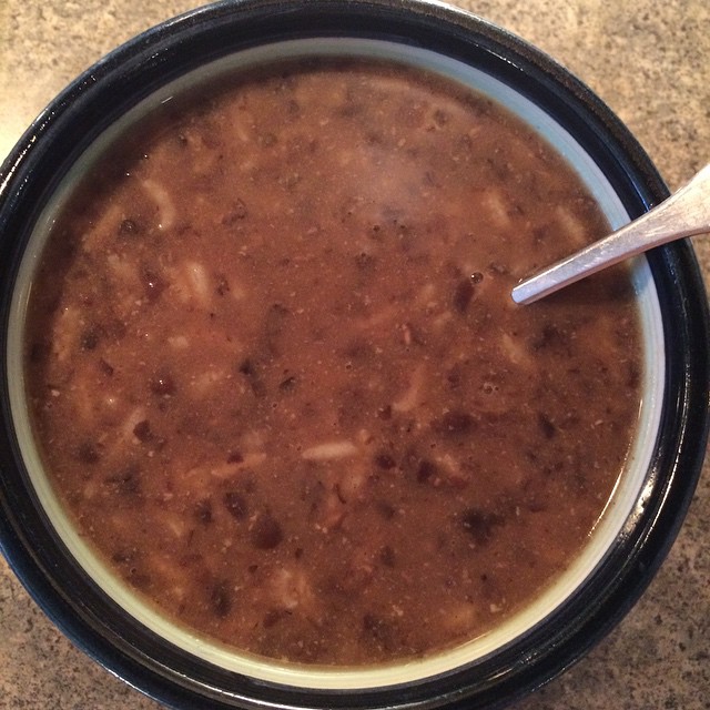 At this point, the soup is delicious as is or can be pureed to make a traditional smooth soup. I ate this with a heaping scoop of steamed basmati rice in it.