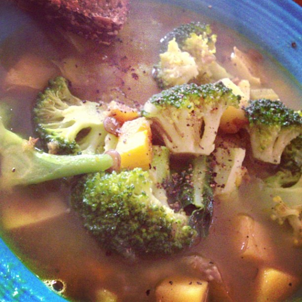 All of the vegetables are happening now, everything was either from my garden or local from the farm market. I had made the chickpeas earlier in the week so I had some in the fridge- another bean would fare well. I had sprouted the rice the day before and cooked it to have it in the house. This recipe would be a great way to use up simple leftovers you may have on hand. Any combination of vegetables would be delicious in this, the addition of sautéed greens versus adding them fresh is a boost of flavor for the soup.